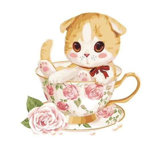 Why You Should Start Cat with Cup of Roses Painting by numbers: